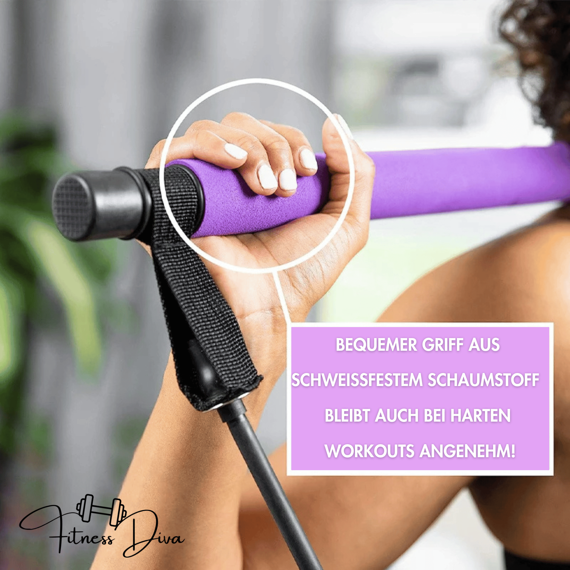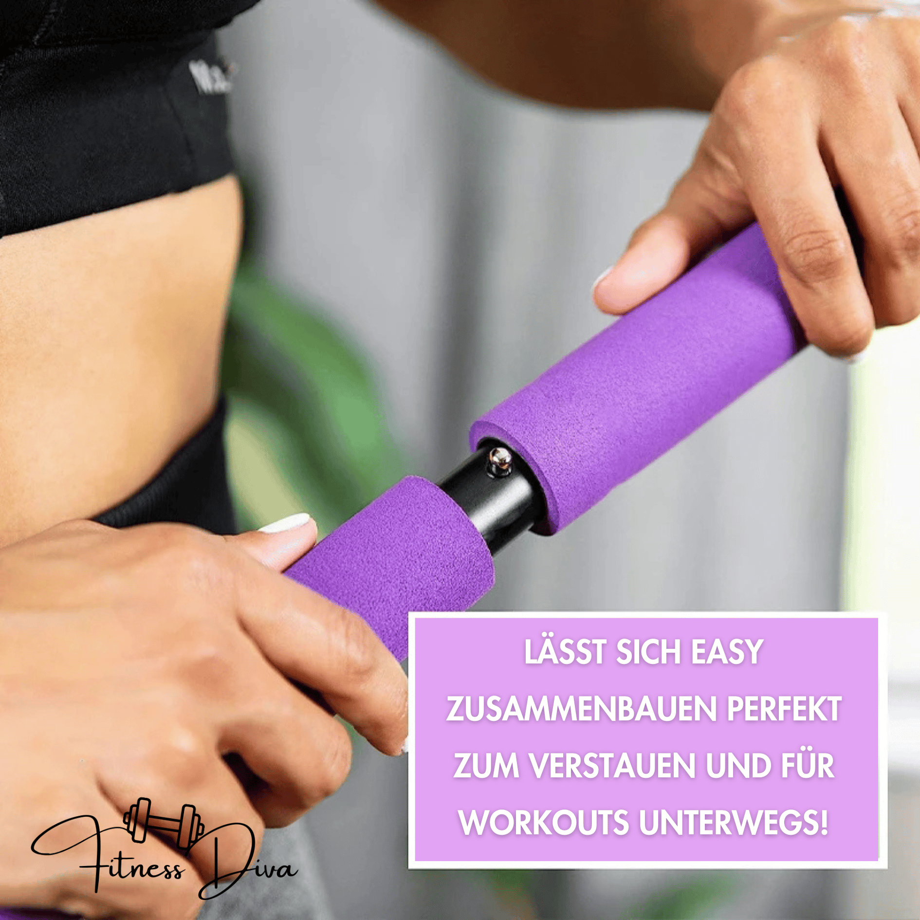 Keine sperrigen Geräte, kein Fitnessstudio, keine Teuren Kurso & Abos, keine Ausreden mehr – die Pilates-Bar bringt dein Workout direkt in deine vier Wände. Entwickelt für ein effektives Ganzkörpertraining, hilft sie dir, Kraft, Flexibilität und Ausdauer zu steigern, wann immer es dir passt. Entdecke, wie vielseitig und einfach Fitness sein kann.