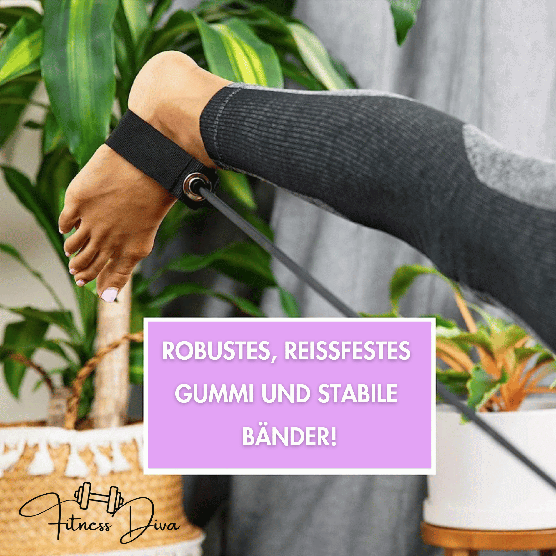 Mit der Pilates-Bar genießt du die Freiheit, dein Training individuell zu gestalten. Von sanften Dehnübungen bis zu intensiven Krafttrainings – die anpassbaren Widerstandsbänder machen es möglich. Ideal für Anfänger, die den Einstieg suchen, und Fortgeschrittene, die ihre Routine auf das nächste Level bringen wollen.